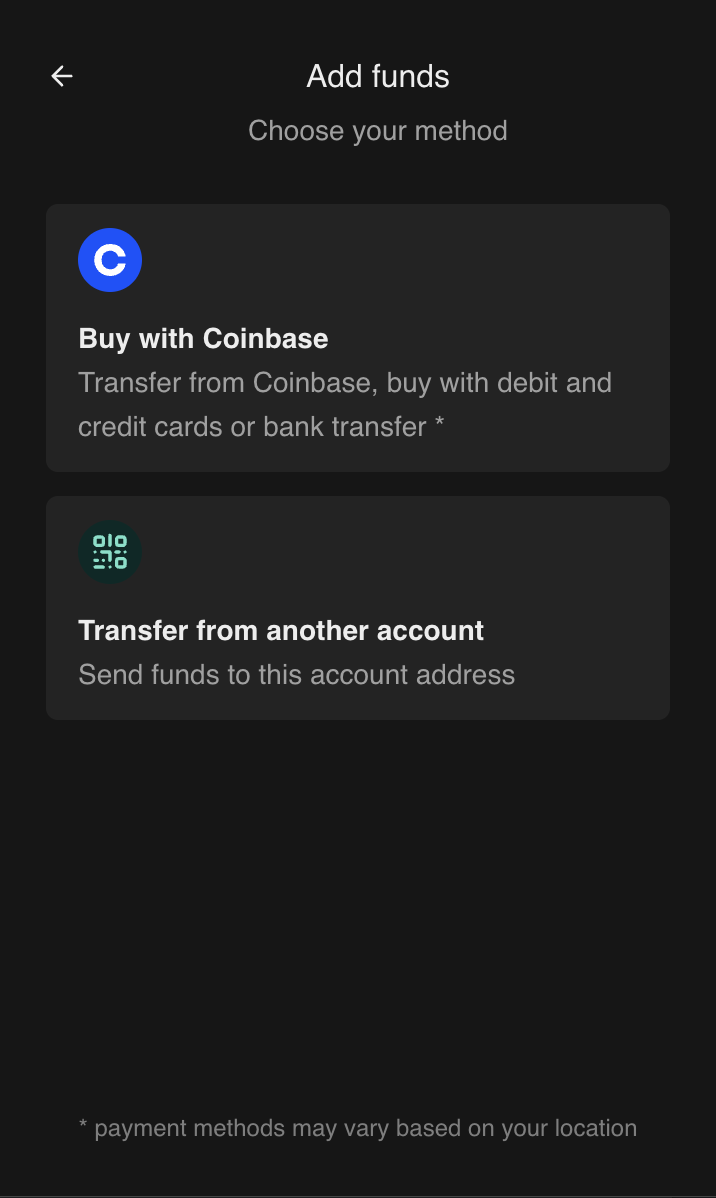 You can now fund your wallet directly from Freighter. To do so, first, make sure you are on Mainnet. Then, click on the ... dropdown on the Account screen. You'll see a button labeled Add funds. This will bring you to a screen with a button labeled Buy With Coinbase. This button takes you to Coinbase where you can select any asset Coinbase offers. At checkout, you will find your Freighter address prefilled. Completing checkout will send the asset to your Freighter wallet.
